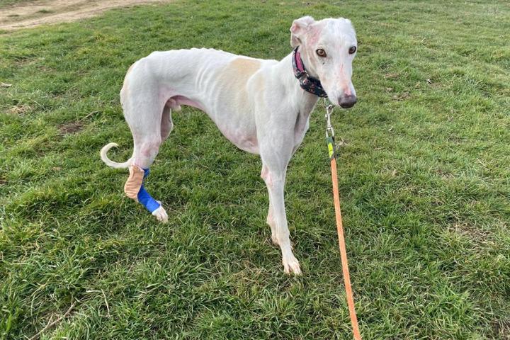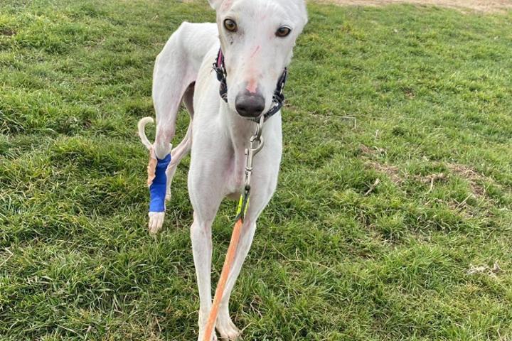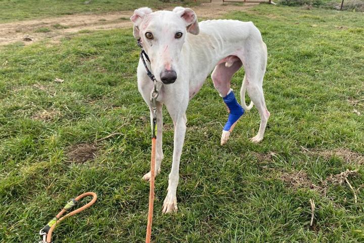 Maíz es un galgo de casi 3 años que llegó a la protectora siendo un cachorro. Es simpático, alegre y tiene mucha energía. Tiene un poco de carácter con otros perros, como buen machito. Pero es muy obediente, pasea muy bien de la correa, come fenomenal aunque lo quemaba todo con sus incesantes carreras en el patio. Sin embargo, hace unas semanas jugando con otros compañeros en el patio se hizo una herida en el tendón de Aquiles, y al ser tan enérgico se lo terminó de rasgar por completo; a veces, las cosas de complican y ha sido su caso. Lo hemos tenido que operar, una operación bastante cara que aunque ha sido exitosa, no va a impedir que Maíz tenga una pequeña cojera para el resto de su vida.