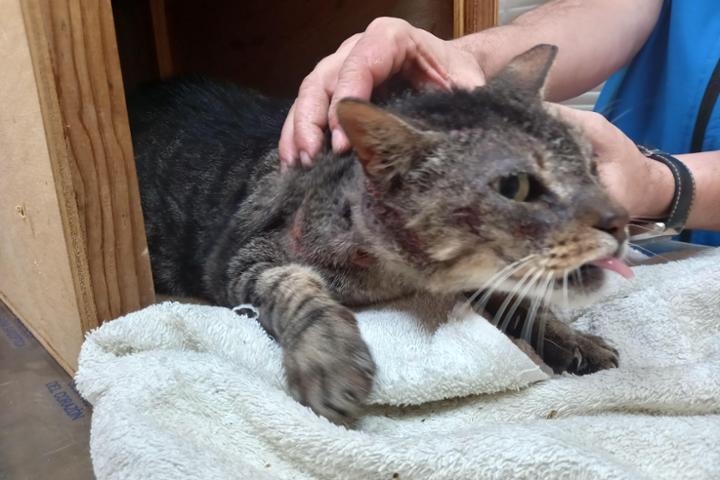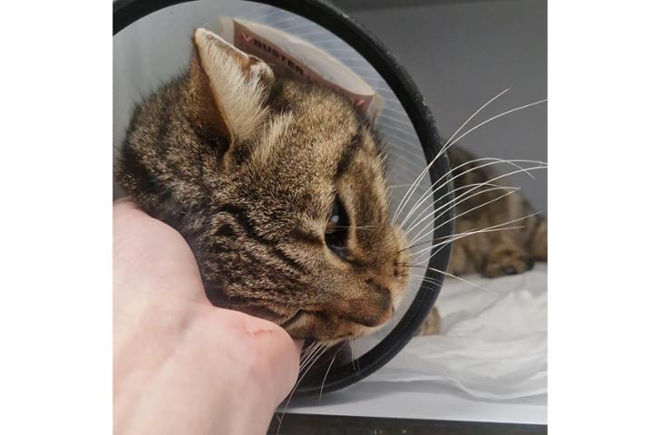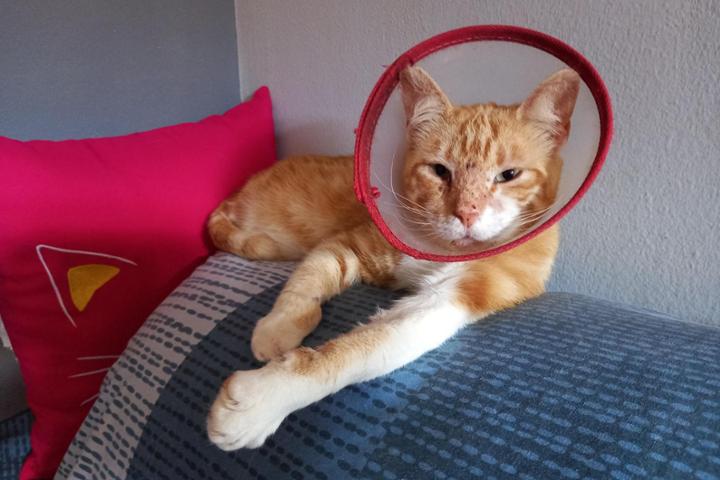 Os dejo una foto de Rambo, uno de los gatos que tenemos ahora ingresado en el vete, han tenido que operar y amputar la cola, conoce más de su historia en Facebook o Instagram en colonias gatos Torrevieja