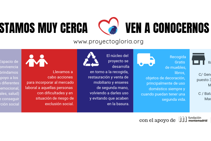 Asociación Proyecto Gloria, entidad sin ánimo de lucro que nace de la iniciativa personal de su presidenta Gloria Iglesias, es una iniciativa diseñada para favorecer el proceso de inserción social y laboral de personas con problemas de drogadicción y enfermos de VIH/SIDA en riesgo de exclusión social. La asociación desarrolla distintos proyectos con el fin de aumentar la calidad de vida y el bienestar de este sector de la población.