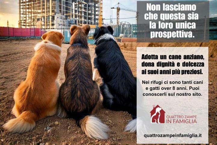 Quattro Zampe in Famiglia accende una luce sui cani e sui gatti anziani che vivono da troppo tempo nei rifugi di tutta Italia e dà voce a chi è stato dimenticato, lanciando la campagna nazionale di sensibilizzazione all’adozione dei cani e dei gatti over 8 anni. La campagna “Adotta un animale anziano” nasce per chi ha visto passare tante persone senza mai essere scelto, per chi attende in silenzio dietro le sbarre di un box e ha smesso di credere in una seconda possibilità, per quei cani e gatti over 8 anni che rischiano di trascorrere tutta la loro vita senza conoscere il calore di una carezza e l’amore di una famiglia. SOSTIENI anche tu la campagna “Adotta un animale anziano” e aiutaci a trasformare l’attesa in una possibilità concreta, restituendo dignità, cura e speranza a chi ne ha più bisogno. 🐾🤍