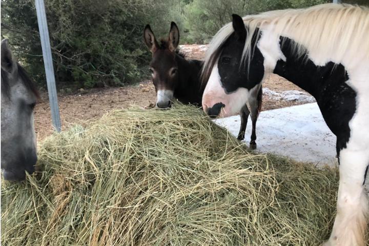 This month we are in dire need of a new delivery of hay, which we can not run out of to keep feeding our equines and farm animals. It is crucial for our horses, donkeys, pigs, sheep and goats. As there is a shortage of good quality forage on Mallorca, we are forced to import full lorries from the mainland to make the costs of the transport to the island feasible.
