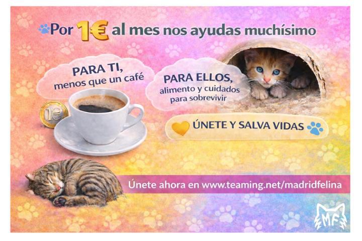 Estas ayudando con 1€ al mes a gatos necesitados en su alimento, curas, medicaciones, asistencia veterinaria. Gracias