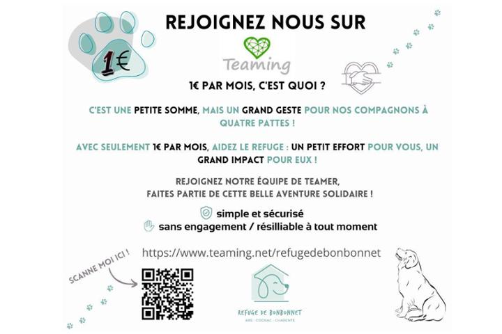 The mission of the dog shelter Refuge de Bonbonnet in Ars, Charente is to take the best possible care of the dogs entrusted to them and to find the right adopter for each. In order to keep our protégés healthy and comfortable, the shelter team ask dog lovers to support the cause with 1€ a month - a contribution that makes a difference!