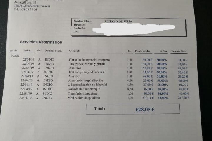 Hemos hecho una recaudación en Facebook, pero los donativos no llegan casi para cubrir los costes de radiografias. Vamos destinar 340€ del grupo teaming para ayudar a Floki a empezar con las pruebas.