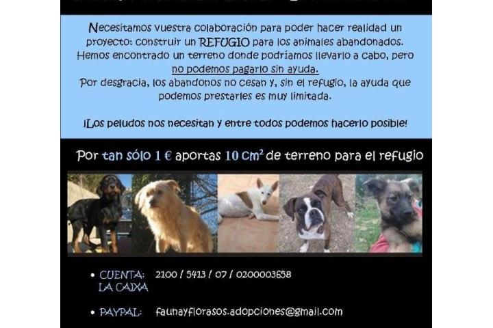 Hola! Somos FAUNA Y FLORA S.O.S. Asoc. Protectora de animales y plantas, fundada sin ánimo de lucro, en Chiva en 2002. Pedimos vuestra ayuda para convertir un proyecto de vida en realidad: un refugio digno para los abandonados, un lugar donde poder atenderlos y rehabilitarlos hasta que encuentren una verdadera familia. Son cada vez más los que nos necesitan y aumentan los gastos: residencias, alimentación, operaciones, etc. Conócelos: www.faunayflorasos.com Gracias por vuestro apoyo!
