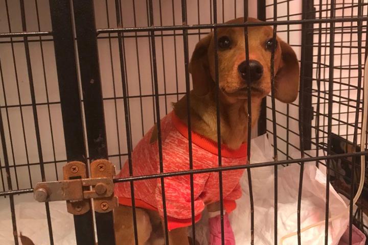 Chiqui recien operada, no esta muy contenta con el collar, seran solo unos dias ten paciencia peque.