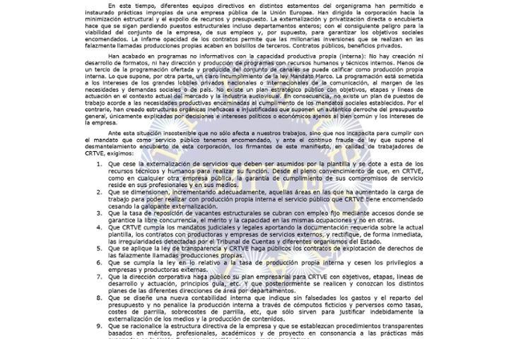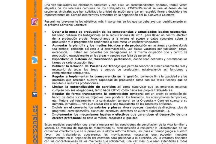 We are born with the aim to draw attention over the squander of CRTVE's budget and the consequences for the jobs and the citizenship as it jeopardizes CRTVE's capacity to fulfilling its entrusted public service mission. Principles: Transparency, Unitarianism and Consensus. Objectives: Fulfillment of the Framework Mandate of CRTVE (2006), own internal production, provision of human and technical resources, corporate transparency and public business plan. TOGETHER WE ARE STRONGER
