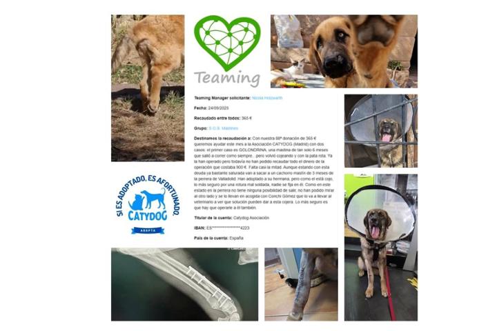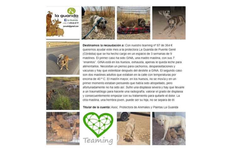 Hemos creado este grupo de teaming para defender a una de las razas más castigadas de España, el mastín y sus cruces. Queremos ayudar (con vuestra contribución) - a los mastines que necesiten nuestro apoyo urgentemente...mastines en peligro de sacrificio, mastines mal heridos y enfermos en la calle. Con la aportación de solamente un euro al mes podemos devolverles una vida sana y digna a estos gigantes mansos y preciosos. Gracias por querer ser sus ángeles de la guarda.