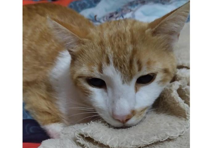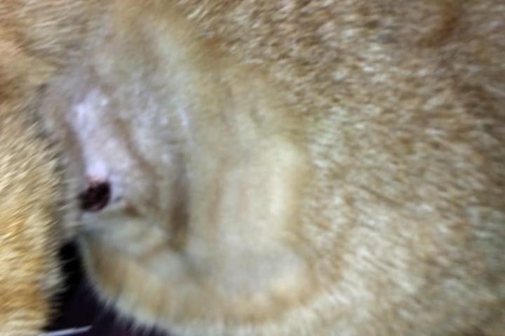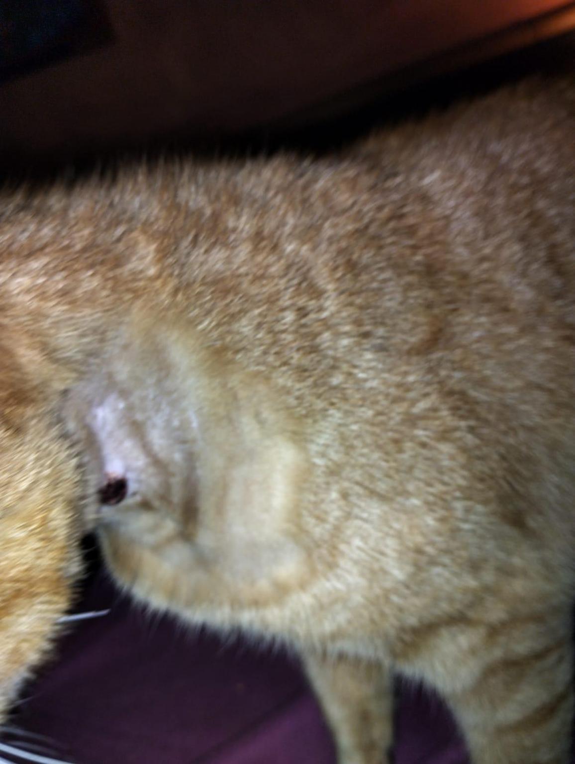 Rosso poco a poco va mejorando, la herida se ha abierto otra vez, se rasca la herida, pero va haciéndose más pequeña, los primeros días comía despacio, llegó a comes 4veces al día, ahora come solo dos veces y juega, está mejorando seguramente, ronronea agradece las caricias