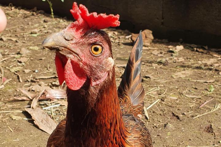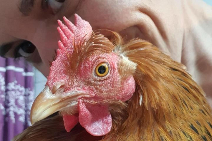 A pesar de tener varios problemas de salud por culpa de la puesta continua cuando era explotada, hoy es una gallina amada; y quiero creer, feliz (dentro de lo posible)