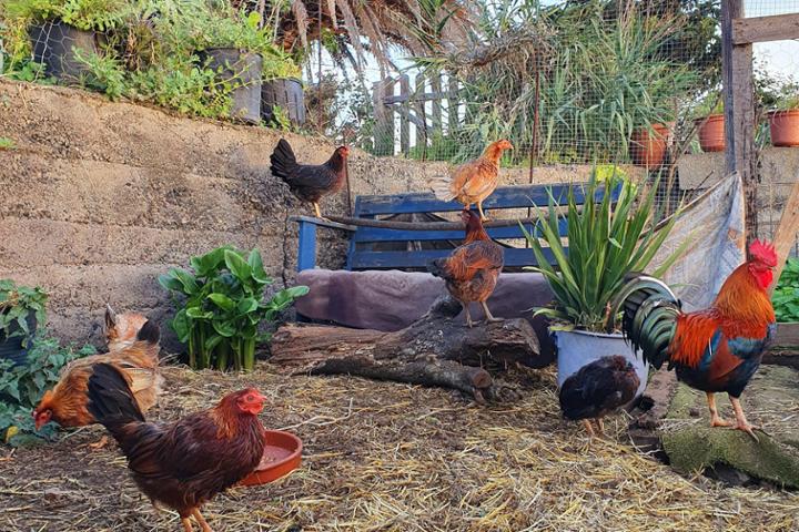 El resto estamos bien. Somos 2 monos, 13 gallinas, 3 gallos, 1 tórtola y 1 rata residentes en Vegan point.