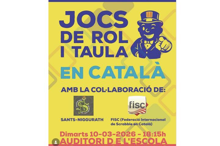 Col·laborarem amb l’AFA de l'Escola Institució Montserrat, a través de la Comissió de l’Ús de la Llengua Catalana, organitzant una tarda de jocs de rol i de taula en català, amb la col·laboració de Sants-Niggurath i la Federació Internacional de Scrabble en Català.