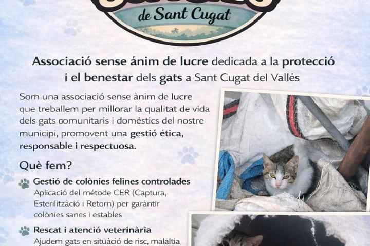 Som Gats de Sant Cugat som una associació sense ànim de lucre nascuda de la unió de persones voluntàries compromeses amb el benestar i la protecció dels gats del nostre municipi. La nostra missió principal és vetllar per la dignitat i la salut dels gats lliures (ferals) i abandonats de Sant Cugat del Vallès. A Sant Cugat hi ha desenes de colònies felines que necessiten una gestió ètica i responsable. Treballem diàriament per garantir que aquests animals tinguin una vida millor.