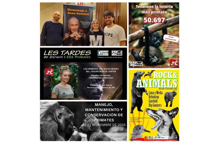 A finales de diciembre se celebró un homenaje a la Dra. Jane Goodall, en el Ilustre Colegio de la Abogacía de Barcelona. Al evento acudieron autoridades de diferentes instituciones y gobiernos, el equipo del Instituto Jane Goodall, socios y colaboradores, investigadores y docentes de varias universidades, estudiantes y también representación de diversas ONG, entre las que estaba SOS Primates. Fue para nosotros un honor estar presentes en un homenaje a una científica pionera y referente en la conservación de los primates, pero también una humanista, animalista, fundadora del Instituto Jane Goodall, Mensajera de la Paz de la ONU, Premio Príncipe de Asturias, y en definitiva, una activista incansable por un mundo mejor.