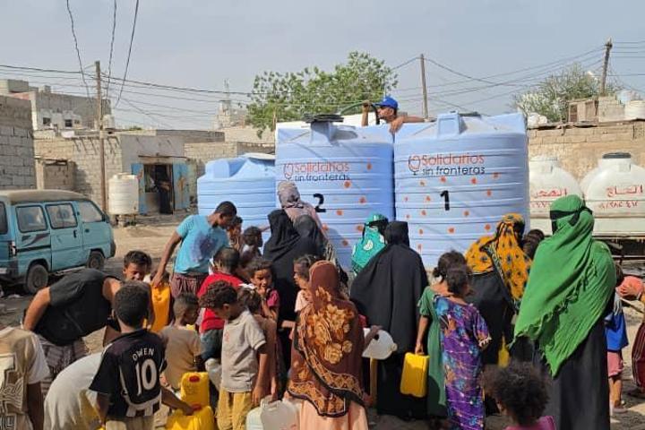 We give DRINKING WATER to families in Yemen who were displaced from their homes by 10 years of war. Yemen is the biggest humanitarian emergency on the planet and is suffering from a cholera epidemic and shocking infant mortality. With your EURO we buy and refill WATER TANKS in IDP camps and schools. We have 50 in 4 camps and in 5 schools. More than 000 9people receive water (800 thousand litres/month). Yemen needs more water! 1€=101 litres in the north and 129 in the south. JOIN US!