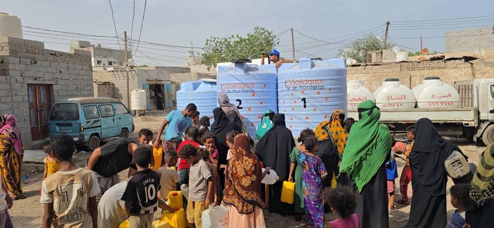 Hemos podido instalar 2 depósitos más de agua en Aden, en el sur de Yemen, para miles de personas, y también un depósito para nuestra escuela número 4, que la hemos incorporado hace pocos meses al proyecto de Desayunos escolares que ayudan a que niños y niñas sean llevados al cole, tengan una educación y estén a salvo de toda la violencia del país. Mantenerles en el cole reduce drásticamente los matrimonios infantiles y el secuestro en las calles para llevarles como soldados.