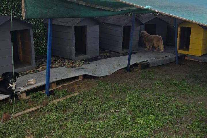Die Hundehütten wurden auf witterungsbeständige Plastikpaletten gestellt, damit sie nicht im Matsch stehen und die Hunde auf feuchtem Untergrund liegen müssen. Zudem wurden sie innen mit wärmenden Materialien verstehen. Dächer und Planen wurden errichtet um die Hütten zusätzlich vor Regen und Schneefall zu schützen.