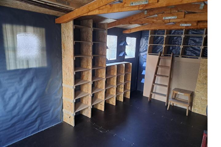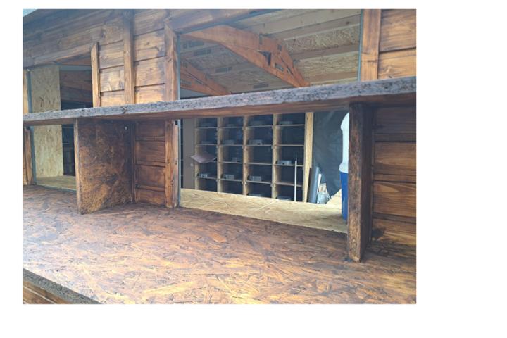 Die Sitzbretter, die mitten im Schlag von der Decke runterhängen kann man ebenfalls nach oben klappen, damit man ungestört den Schlag reinigen kann.