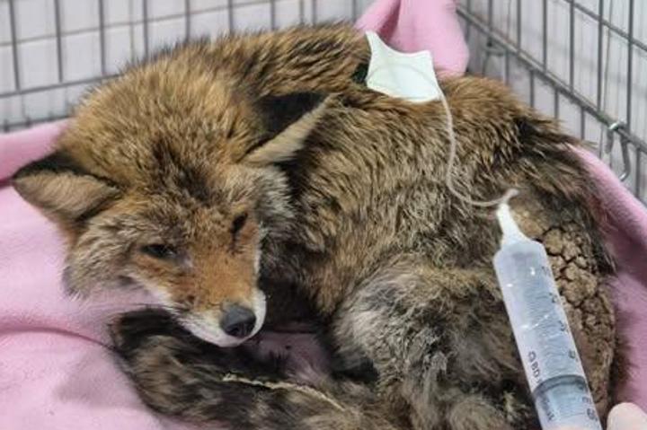 Ce renard souffrant de la gale a été repéré aux alentours du domicile de ses découvreurs. Après plusieurs jours à essayer de le capturer, ils ont pu nous l'amener au centre.