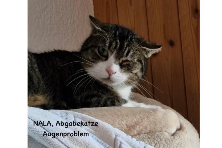 Sie ist ja in der Tierarztpraxis, weil ihr Auge behandelt werden muss. Wir mussten Nala samt Katzenbaum in die Praxis bringen, so unkooperativ war sie.