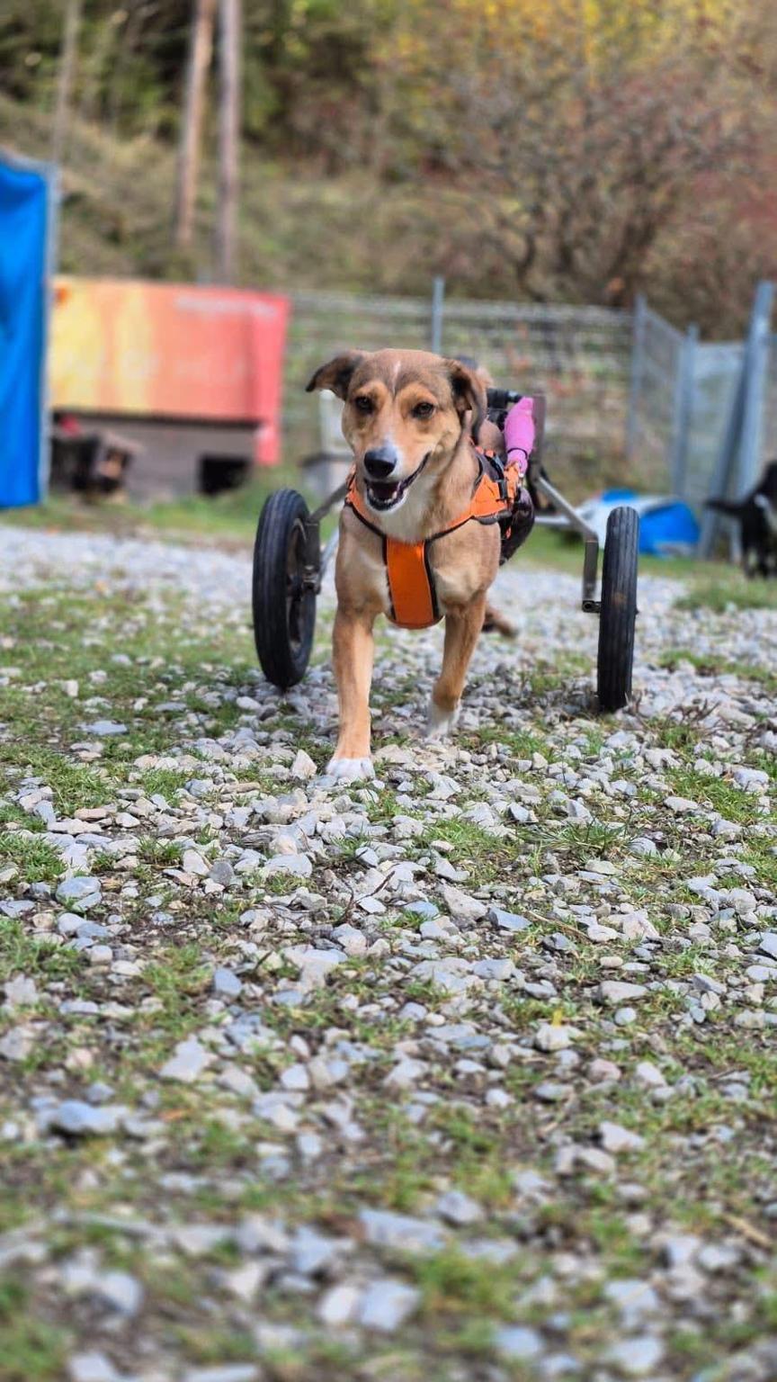 Luna aus Rumänien wurde mit dem Auto angefahren nach der Geburt ihrer Welpen! In Rumänien hätte sie den ersten Winter nicht überlebt wegen ständiger Harnwegsinfekte bereits im Herbst! Luna lebt seit 2020 bei uns und ist eine entzückende Rollihündin die so viel Dankbarkeit & Liebe zurück gibt Durch unsere Rettung kann sie trotz Handicap glücklich im Tierschutzhaus leben