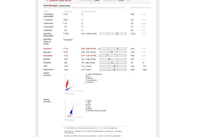 Aquí os enseñamos la analítica completa, en la parte derecha sale los resultados de la anterior!
