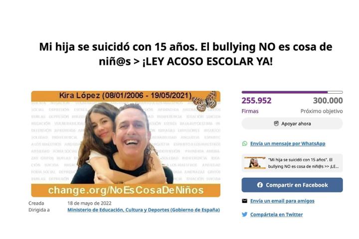 Por Kira, Sandra, Daniela, Dani, Lucía, Alejandro, Laura, Claudia, Óscar, Lucía, Ilan, Adam, Diego, Carla, Alan, Hugo, Alana, Jokin y tantísimas víctimas anónimas de violencia y acoso escolar. No son cifras, son vidas.