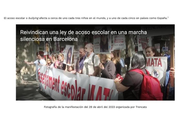 The Trencats Association Against Violence in Schools is a non-governmental, non-profit organization that arises from the need to attend to and support victims and their families who find no way out due to the inaction of some centers and the subsequent administrative silence they often face. Trencats -Broken in Spanish- offers immediate advice to families from a human and expert perspective thanks to professionals from various fields.bito