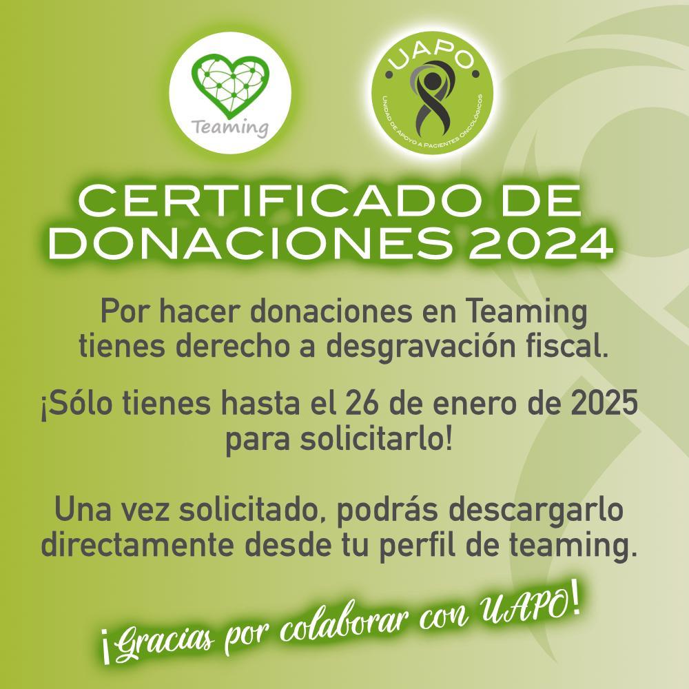 Si hiciste donaciones en 2024 a través de Teaming, obtendrás una desgravación fiscal en tu declaración de la renta de este ejercicio.