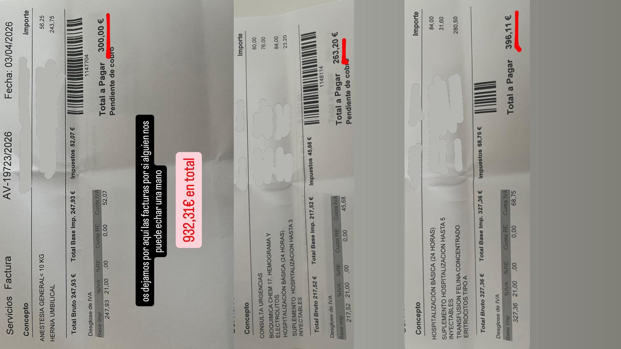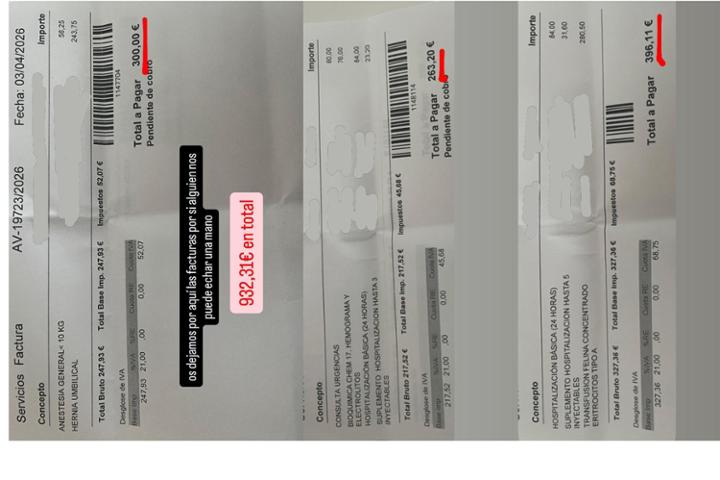 Trufa por desgracia falleció pero seguimos teniendo una deuda de casi mil euros, 932,31€ para ser exactos (facturas adjuntadas).