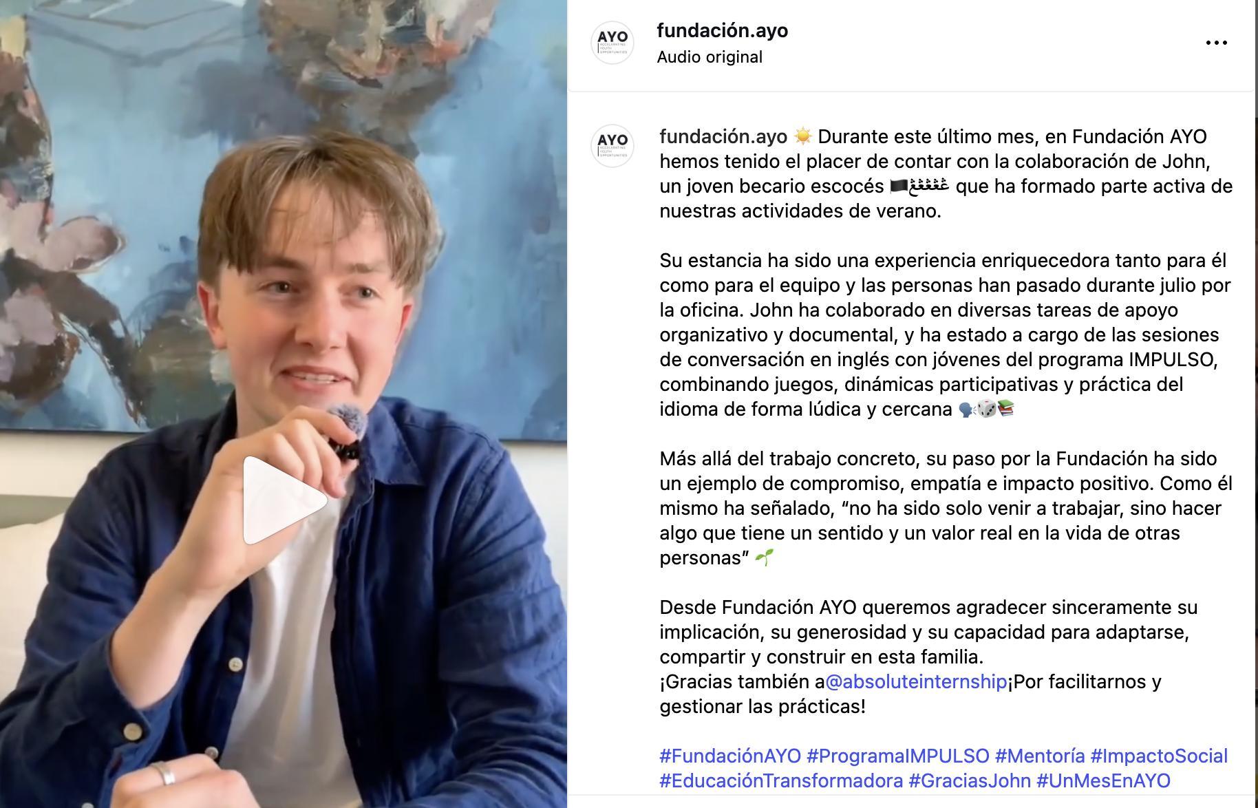 Os invitamos a pasaros por Instagram para ver vídeos de una de las actividades de verano: clases de inglés, o para conocer a nuestro voluntario, John, que lo hizo posible.