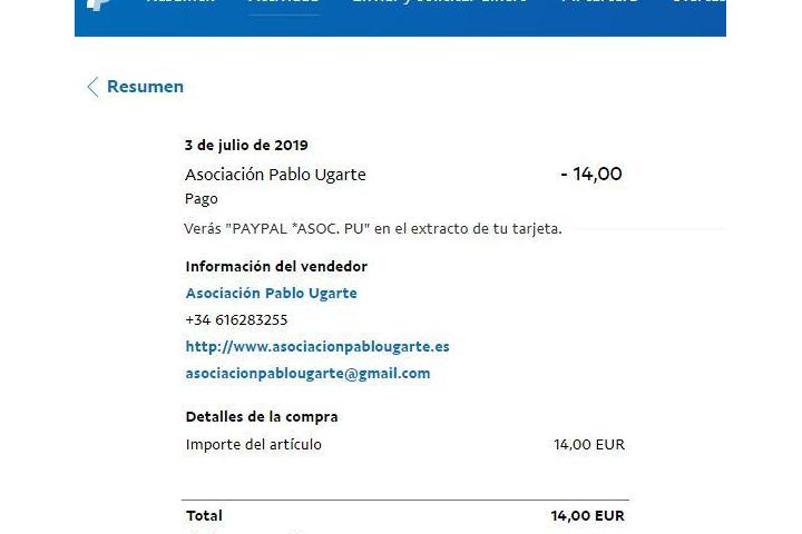 Adjunto resguardo del donativo a la Asociación Pablo Ugarte.